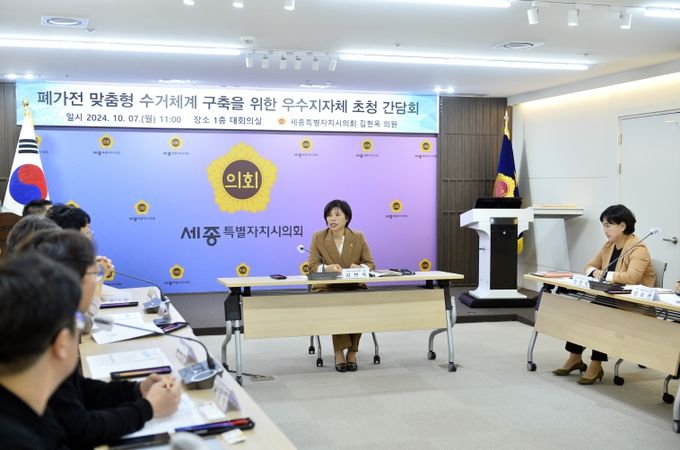 마지막으로 김현옥 의원은 “이번 간담회는 제도 시행의 어려움을 논의하고 해결방안을 찾는 의미 있는 자리였다. 폐가전 배출량이 전국 1위인 세종시가 폐가전 맞춤형 무상 수거제를 적극 시행해 자원순환사회 실현에 앞장설 미래를 기대한다”고 소감을 전하고 제도 홍보와 공감대 형성을 위한 협약식과 관련조례 개정 계획을 언급하며 간담회를 마무리했다.