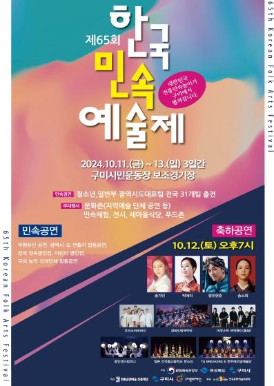 [경남도민뉴스=이돈휘 기자] 구미시는 10월 11일부터 13일까지 3일간 구미시민운동장 보조경기장 일원에서 '제65회 한국민속예술제'를 개최한다.