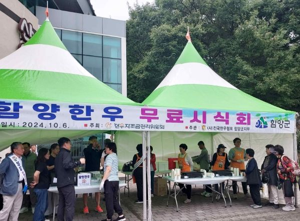 [경남도민뉴스=장광동 기자] 함양군은 지난 6일 함양산삼축제장에서 한우의 우수성을 알리고 소비를 촉진하기 위한 시식 행사를 개최했다.