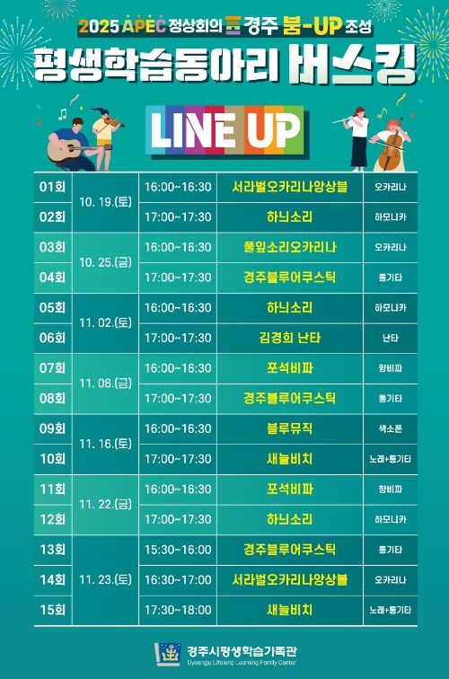 [경남도민뉴스=이돈휘 기자] 경주시평생학습가족관은 APEC 정상회의 유치 기념과 성공 개최를 기원하는 평생학습동아리 APEC 버스킹 공연을 선보인다.