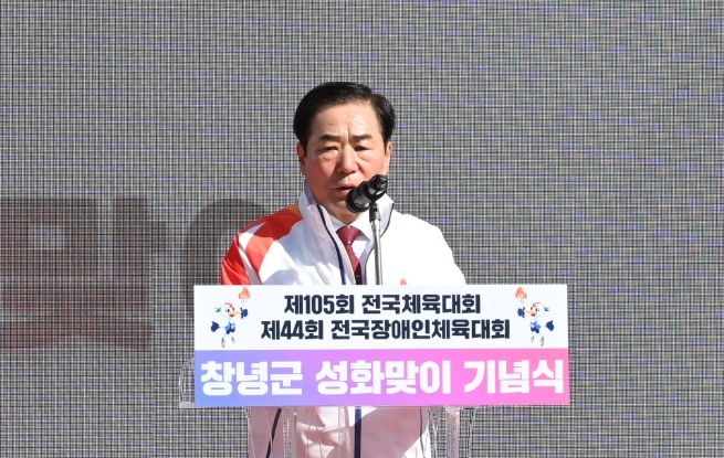 [경남도민뉴스=김병현 기자] 창녕군은 10일 창녕군청 광장과 성황봉송 구간에서 개최된 제105회 전국체전 및 제44회 전국장애인체전의 성화 봉송이 많은 군민들의 응원 속에서 마무리됐다고 밝혔다.