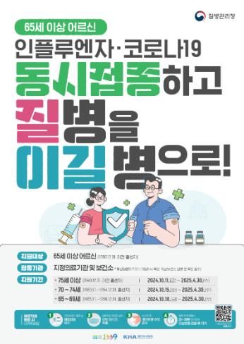 덧붙여, 이번 ‘2024-2025’ 절기 코로나19 예방접종은 인플루엔자와 동시접종이 가능하며 65세 이상인 경우 무료접종이 가능하다.