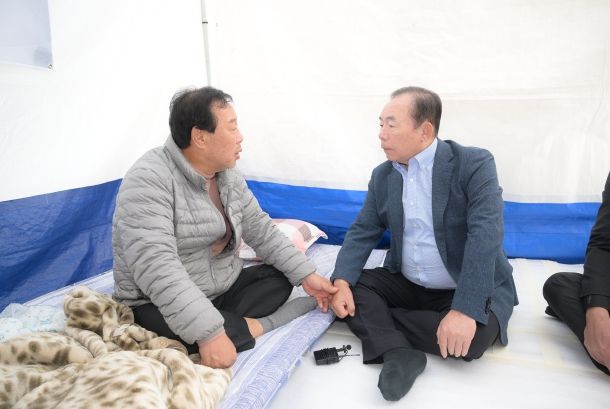 [경남도민뉴스=도문호 기자] 이인제 전 의원이 11일 단식 6일 차에 접어든 최민호 시장을 찾아 건강을 염려하면서 “국가가 승인하고 시민이 바라는 사업을 반대하는 것은 시장이 아닌 민심을 역행하는 것”이라고 강조했다.
