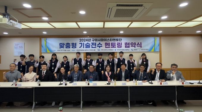 [경남도민뉴스=이돈휘 기자] 구미시는 지난 11일 마이스터 멘토단 주관으로 구미전자공업고등학교와 ‘맞춤형 기술전수 멘토링 협약식’을 진행했다. 이번 협약식에는 마이스터 멘토단원, 구미전자공고 학생, 경북경영자총협회 관계자 등 총 26명이 참석했다.
