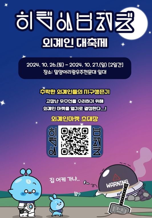[경남도민뉴스=나희준 기자] 밀양시시설관리공단은 오는 26, 27일 밀양아리랑우주천문대 일원에서 제5회 외계인 대축제를 개최하며, 14일부터 사전 예약자를 모집한다고 밝혔다.