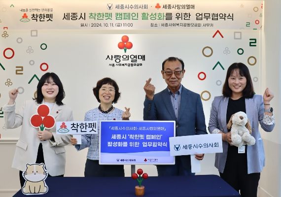 이희정 세종모금회 사무처장은 “세종시수의사회와 함께 지역 동물병원 등을 통해 착한펫 캠페인 홍보 활동을 추진할 예정이다”며 “모두가 행복한 사회로 나아갈 수 있도록 최선을 다하겠다”고 말했다.