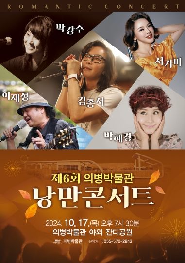 [경남도민뉴스=이상민 기자] 의령군은 깊어가는 가을밤을 잔잔한 감동으로 수놓을 ‘제6회 의병박물관 가을 낭만콘서트’를 박물관앞 잔디공원에서 오는 17일 저녁 7시 30분에 선 보인다고 밝혔다.