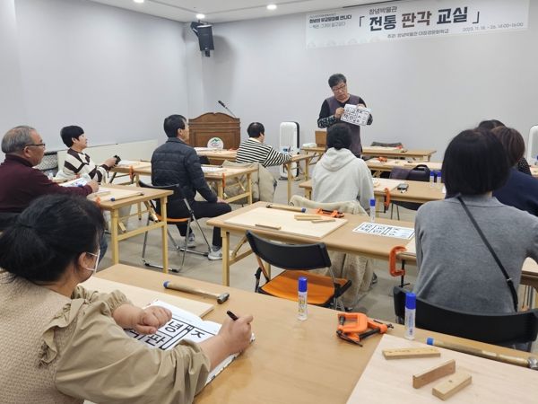 성인들을 위한 ‘전통판각교실’은 전통판각의 기본 개념과 원리를 실습 중심으로 배우는 프로그램으로, 10월 16일부터 11월 13일까지 5주간 운영된다.