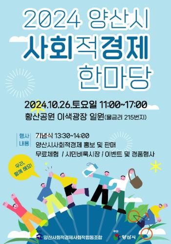 양산시 관계자는 “이번 행사는 관내 사회적경제기업들의 홍보 및 판로확대에 기여할 뿐만 아니라 사회적경제에 대한 시민들의 이해도를 높일 수 있는 중요한 장이 될 것”이라며 “많은 시민과 함께 사회적경제의 가치 공유하고 실현할 수 있는 행사가 되기를 바란다”고 전했다.