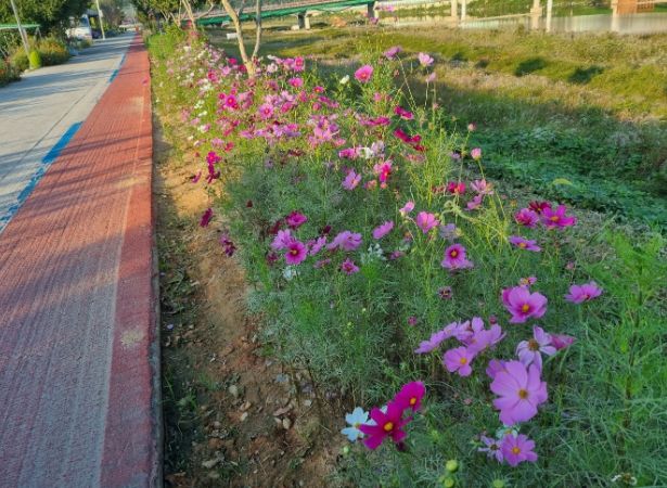 지난 8월 강누리 둑길 1.8㎞ 구간에 조성한 코스모스길은 주민과 관광객에게 다양한 볼거리를 제공하기 위해 추진됐다.