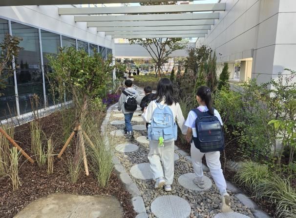 정원 조성이 완료됨에 따라 학생들은 아름다운 정원과 산책로를 따라 등‧하교할 수 있게 된다.