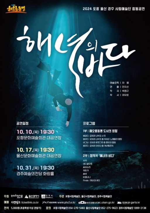 [경남도민뉴스=이돈휘 기자] 경주시는 2024년 해오름동맹 합동공연 ‘해녀의 바다’가 오는 31일 오후 7시 30분 경주예술의전당 화랑홀에서 열린다고 22일 밝혔다.