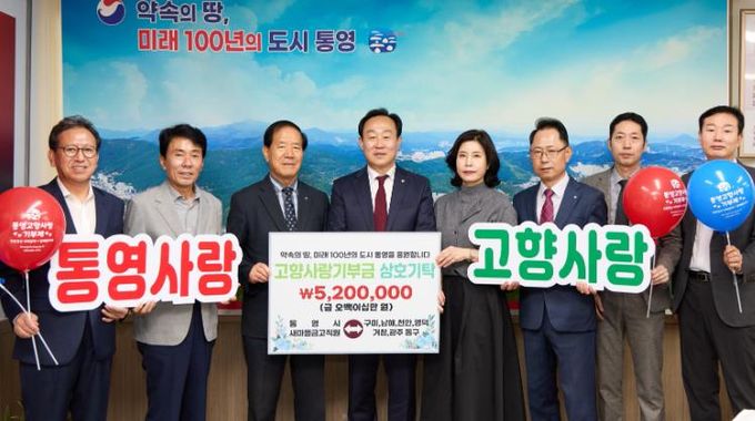 [경남도민뉴스=김부경 기자] 통영시는 지난 22일 통영시 관내 새마을금고 임직원 52명이 거창, 구미, 광주 동구, 남해, 영덕, 천안에 고향사랑기부금 520만 원을 상호 기부했다고 밝혔다.