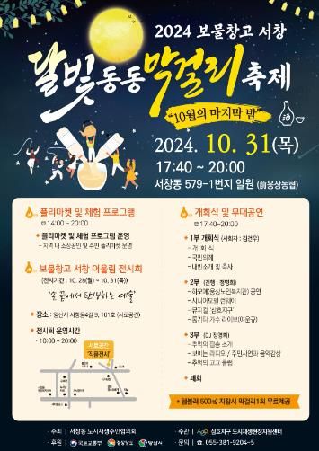 [경남도민뉴스=최미정 기자] 양산시와 양산시 도시재생지원센터는 오는 31일 서창로 184-1번지 구. 웅상농협 부지 일원에서 지역 주민이 즐길 수 있는 ‘2024 보물창고 서창, 달빛동동 막걸리 축제’를 개최한다.