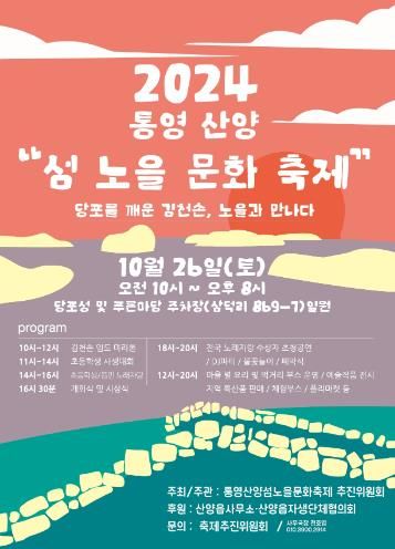 [경남도민뉴스=김부경 기자] 제2회 통영산양섬노을문화축제가 오는 26일 당포성 및 푸른마당 주차장 일원에서 개최된다고 23일 밝혔다.