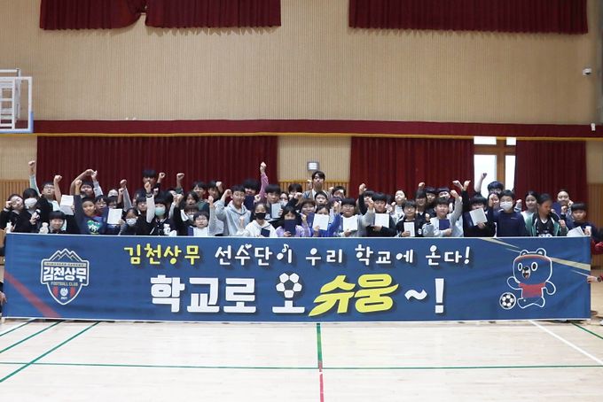 [경남도민뉴스=이돈휘 기자] 김천상무가 올해 다섯 번째 ‘학교로 오슈웅’을 진행했다.