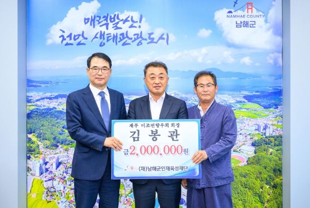 [경남도민뉴스=김부경 기자] (재)남해군인재육성재단은 남해군조합운영협의회에서 200만 원, 재부미조면향우회 김봉관 회장이 200만 원, 설천면 큐원상사 안동규 대표가 100만 원의 인재육성기금을 기탁했다고 밝혔다.