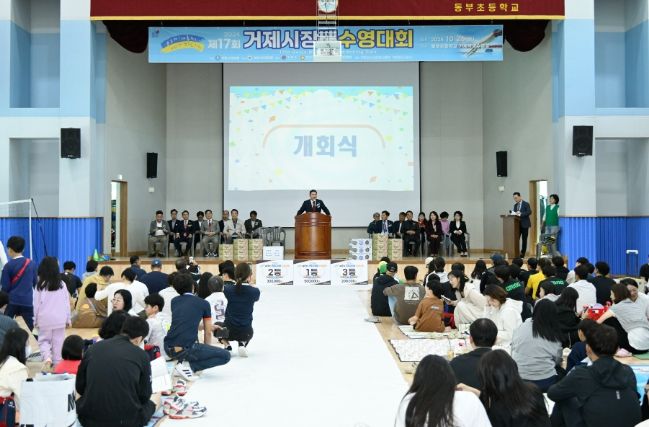 [경남도민뉴스=김부경 기자] 제17회 거제시장배 수영대회가 지난 26일 동부초등학교 수영장에서 열렸다.