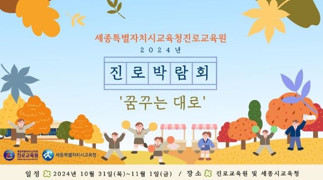 [경남도민뉴스=도문호 기자] 세종특별자치시교육청진로교육원은 10월 31일부터 11월 1일까지 이틀간 진로교육원과 세종특별자치시교육청 대강당에서 ‘2024년 세종 진로박람회 꿈꾸는 대로’를 개최한다.