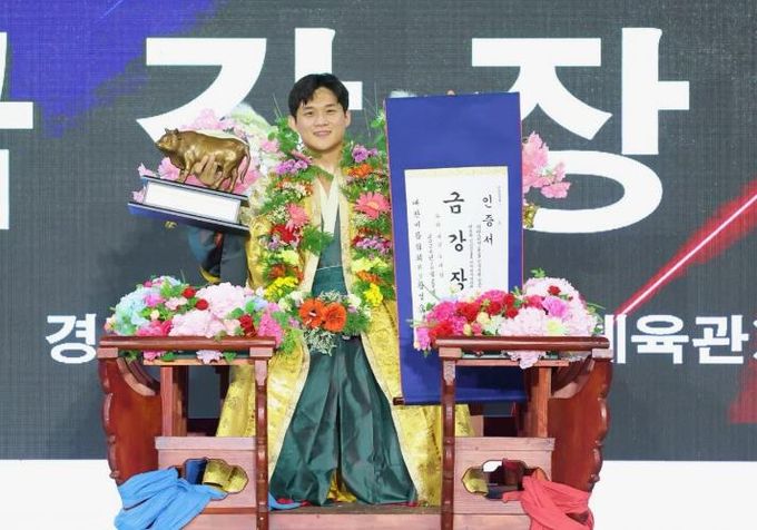노범수는 이날 5전 3선승제로 펼쳐진 금강장사(90㎏ 이하) 결정전에서 김태하(수원특례시청)에게 3-1로 승리하며, 개인통산 22번째(금강장사 3회·태백장사 19회) 황소트로피를 들어올렸다.