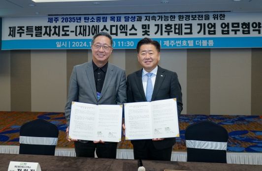 [경남도민뉴스=하형수 기자] 제주특별자치도와 재단법인 에스디엑스와 23개 기후테크 기업이 2035 탄소중립 제주 비전 실현을 위한 협력 체계를 구축했다.