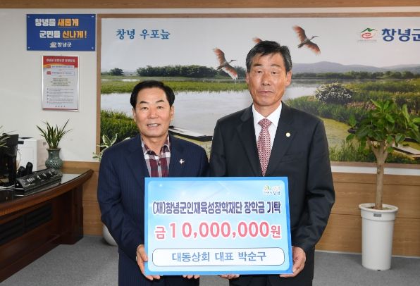 [경남도민뉴스=김병현 기자] 창녕군은 지난 30일, 박순구 대동상회 대표가 (재)창녕군인재육성장학재단에 지역의 인재 육성을 위해 장학금 1천만 원을 기탁했다고 밝혔다.