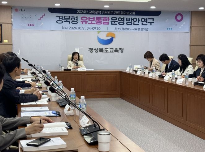 [경남도민뉴스=이돈휘 기자] 경북교육청은 31일 본청 홍익관에서 경북교육청과 경북도청 담당 부서 관계자, 공․사립 유치원과 어린이집 연합회 대표 등 20여 명이 참석한 가운데 경북형 유보통합 정책 연구 평가보고회를 개최했다.