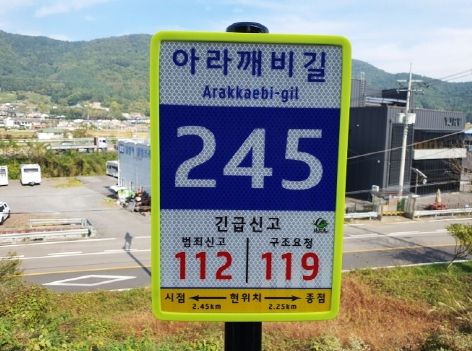 특히, 옛 경전선 폐선부지에 조성된 ‘아라길’과 ‘아라깨비길’에 기초번호를 부여하고 기초번호판을 설치함으로써 긴급상황 시 정확한 위치 파악과 빠른 대처가 가능하도록 체계를 마련했다.