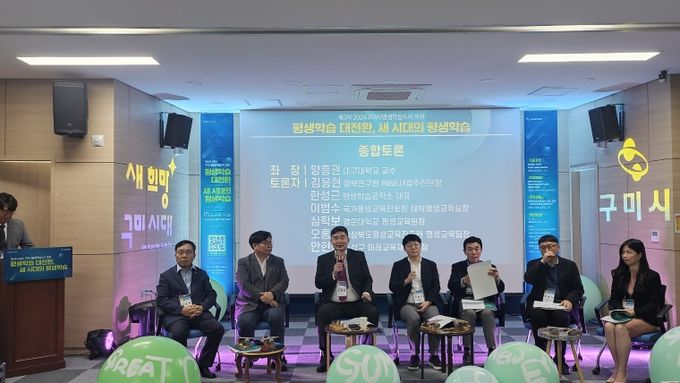 전문가 토론에서는 대구대 양흥권 교수를 좌장으로 국가평생교육진흥원, 경상북도인재평생교육진흥원, 지역 대학 및 지자체 전문가들이 패널로 참여했다. 이들은 학습 플랫폼으로서 대학의 역할과 지속 가능한 평생학습도시 조성을 위한 지자체의 역할과 구조적 개편 방안을 논의했다.