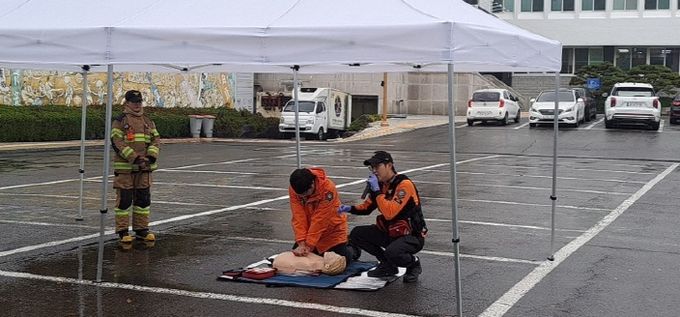 특히 소방훈련과 병행하여 실시한 소화전ㆍ소화기 작동방법, 자동제세동기(AED) 및 심폐소생술(CPR) 등 실제 사고 발생 시 위급 상황에 즉각 대처할 수 있는 능력을 기르는데 중점을 두고 실시했다.