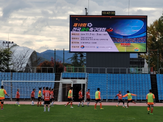 [경남도민뉴스=백형찬 기자] 거창군은 지난 2일부터 3일까지 거창스포츠파크에서 한국교수축구연맹 주최한 ‘제18회 전국 교수 축구대회’를 성황리에 개최했다고 밝혔다.