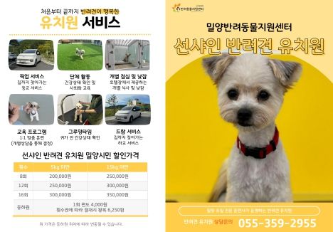 [경남도민뉴스=나희준 기자] 밀양시는 오는 5일부터 선샤인 밀양 테마파크 내 반려동물지원센터에서‘선샤인 반려견 유치원’을 시범 운영한다고 밝혔다.
