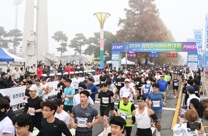 [경남도민뉴스=최민숙 기자] 11월 3일 김천 종합스포츠타운 보조경기장에서 개최한 2024 김천전국마라톤대회가 성황리에 막을 내렸다.