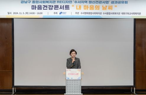 이번 행사는 종합사회복지관 특화사업 Re디자인 ‘수서지역 정신 건강돌봄사업’의 성과를 공유하기 위해 마련됐으며, 지역주민과 사회복지기관 종사자 300여 명이 참석한 가운데 수서지역 정신 건강 돌봄 사업의 경과 보고와‘우울·불안에 대처하는 방법’을 주제로 한 이광민 정신건강의학과 전문의의 강연이 이어졌다.