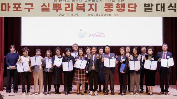 [경남도민뉴스=김완호 기자] 마포구는 11월 6일 오후 마포구청 대강당에서 ‘실뿌리복지 동행단’ 발대식을 열고 800여 명의 단원을 위촉했다.