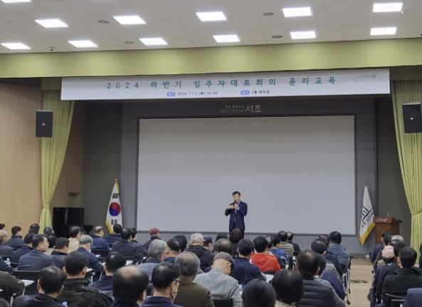 이에 서초구는 매년 전문가를 초빙해 관련 교육을 실시하고 있다. 올해 6월에도 입주민대표회의 윤리교육을 개최하여 큰 호응을 얻였으며, 주민들의 교육 요청에 의해 11월 추가로 교육을 실시하게 되었다.