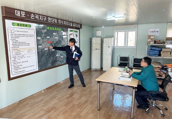 이날 조여문 부군수는 동절기를 맞아 유림광역상수도시설과 대포·손곡지구 환경기초(하수)시설 현장을 찾아 현장을 점검하고, 안전을 최우선으로 한 공사 추진을 당부하는 한편, 관계자들을 격려하고 애로사항을 경청했다.