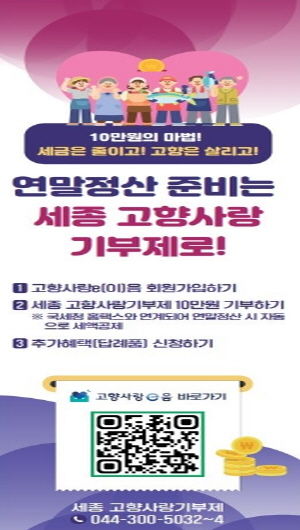 [경남도민뉴스=도문호 기자] 세종특별자치시가 다가오는 연말정산 기간을 맞아 고향사랑기부제의 적극적인 참여를 독려하고 있다.