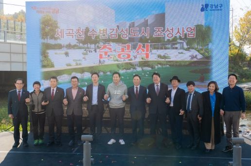 한편, 강남구는 세곡천 수변감성도시 조성사업을 통해 수변 스탠드를 조성하여 친수공간을 확장하고, 무대가 설치된 물맞이공원을 중심으로 자연·생태 체험이 가능한 테라스와 어린이 놀이터를 설치하는 등 다양한 세대가 즐길 수 있는 복합문화공간을 마련했다.