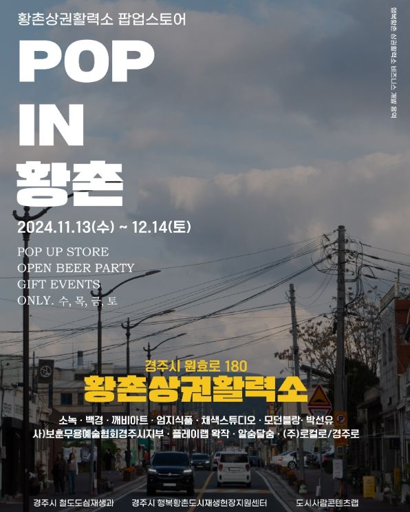 [경남도민뉴스=이돈휘 기자] 경주시는 다음 달 14일까지 약 한 달에 걸쳐 황촌마을활력소에서 경주 지역 브랜드 스타트업 11개 팀이 참여하는 팝업스토어 ‘POP IN 황촌’을 개최한다.
