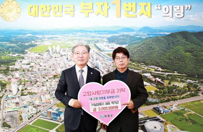 [경남도민뉴스=이상민 기자] 의령군은 지난 12일 제3회 리치리치페스티벌 솥바위 부표와 리치뱃길 투어 참가업체 ‘㈜남강레저’ 박기곤 대표가 의령발전을 위한 고향사랑기부금 300만원을 기부했다고 밝혔다.