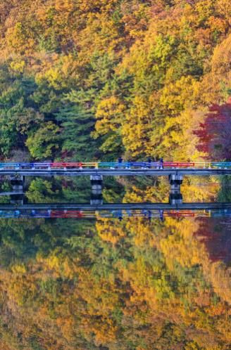 저수지에서 여유롭게 가을 풍경을 감상할 수 있다.