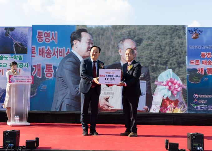 K-드론 배송서비스는 국토교통부와 항공안전기술원이 주관하는 2024년 드론 실증도시 구축 공모사업에 통영시와 드론배송 전문 업체인 ㈜에이엠피 컨소시엄이 선정되어 추진했으며, 통영시에는 산양권, 욕지권, 한산권에 3개의 드론배송센터와 부속 섬마을에 15개의 드론배달점이 구축돼 있다.