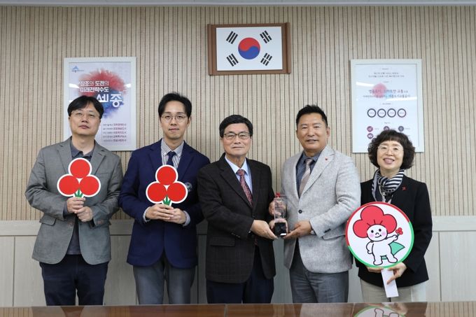 세종사회복지공동모금회는 11일 세종특별자치시 조치원 세종시도시교통공사 사장실에서 도순구 사장, 성낙문 전략경영본부장, 박정율 기획혁신처장, 최태영 혁신성과팀장, 박상혁 세종모금회장, 이희정 사무처장 등이 참석한 가운데‘2024 사랑의열매 나눔문화 확산공로 감사패’전달식을 진행했다.