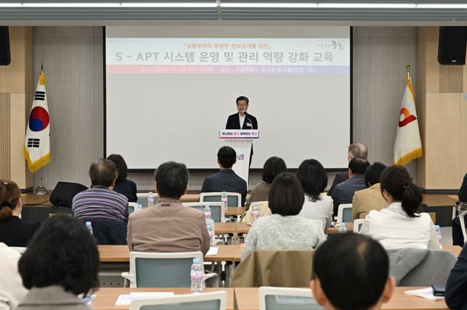 [경남도민뉴스=김완호 기자] 서울 중구가 지난 13일, 공동주택 단지의 효율적인 관리를 돕기 위해 ‘S-APT 시스템과 공동주택 운영 교육’을 지난 13일 개최했다. 중구청 중구홀에서 열린 교육은 관내 공동주택 입주자대표회의 임원과 관리사무소 직원 등 약 100여 명이 참석하여 높은 관심을 보였다.