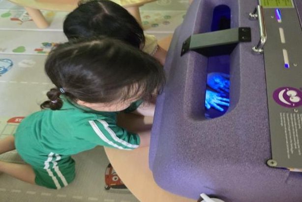 교육 기기는 세균의 역할을 하는 형광 로션을 손에 발라 씻고 남아있는 형광물질로 올바른 손 씻기가 이루어졌는지 확인할 수 있는 ’뷰박스‘와 손가락 인형 교구 등으로 아이들의 눈높이에 맞춰 교육을 진행할 수 있도록 돕는다.