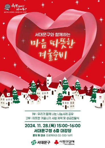이성헌 서대문구청장은 “힘든 시기이지만 주민 모두 따뜻한 겨울을 보낼 수 있도록 많은 분들의 관심과 참여를 부탁드린다”고 말했다.