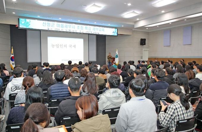 이승화 산청군수와 직원 200여 명이 참석한 특강에서는 ‘모두가 알면 유익한 세금 상식’이란 주제로 농업(법)인 관련 세금, 상속·증여세 및 양도소득세 등에 대한 교육이 이뤄졌다.