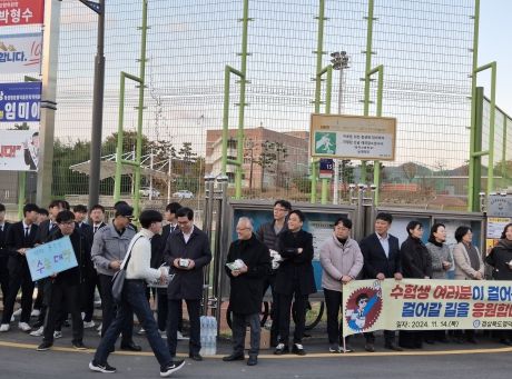 [경남도민뉴스=이돈휘 기자] 경상북도영덕교육지원청은 11월 14일 2025학년도 대학수학능력시험을 맞이하여 경북교육청 80지구 제14시험장인 영덕고등학교 입구에서 정성껏 마련한 응원품을 전달하며 수험생들을 응원했다.