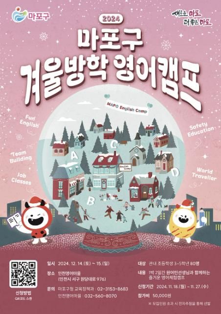 [경남도민뉴스=김완호 기자] 서울특별시 마포구는 지역 내 초등학생들이 즐겁게 영어를 배우며 겨울방학을 알차게 보낼 수 있도록 ‘2024년 겨울방학 영어 캠프’ 참가자를 모집한다.